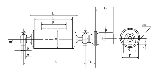 a. 该产品的减速机构采用摆线针轮传动,使电机外露与滚筒直联,可取代电动机一减速机一传动滚筒组成的老式驱动装置。
