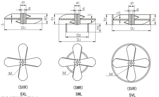 四叶左旋推进式-SXL、四叶右旋稳定环推进式-SWR、四叶右旋推进式-SXR、四叶左旋导流筒推进式-SVL、四叶左旋稳定环推进式-SWL、四叶右旋导流筒推进式-SVR