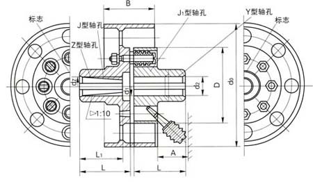 2、轴孔型式及长度L,L1可根据需要选取。