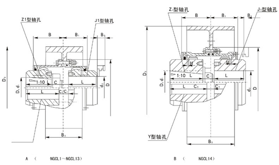 NGCL型鼓形齿式联轴器基本参数和主要尺寸
