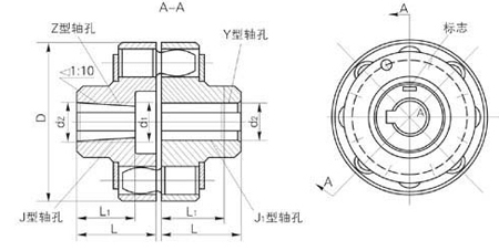 轴孔直径 d1/mm, d2/mm,dz/mm |