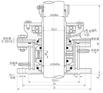 结构:小弹簧、双端面、非平衡型(205)小弹簧、双端面、平衡型(206、207)