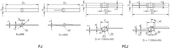 | DJ | d | d0 | d1 | d2 | δ | h | h1 | b | t | C | m | f | e | N/n不大于 | 重量(kg) |