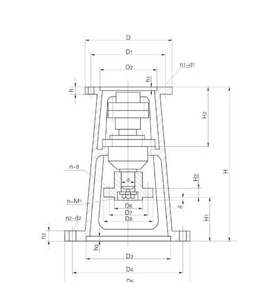 | 机架型号 | 减速机型号 | 输入端接口 | 输出端接口 | H | H1 | H2 | H3 | d | D6 | D7 | D8 | n-φ | n-M1 | ||||||||||