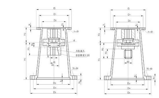 本机架适用于摆线针轮减速机的联接,配刚性联轴器,上联轴器装JA型直孔,下联轴器装A型直孔或B型锥孔,锥度为1:20的联轴器。该机架无支承适用于反应器传来的轴向力不大时使用。