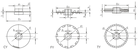 平齿形圆盘涡轮式CY、翻齿形圆盘涡轮式FY、贴齿形圆盘涡轮式TY