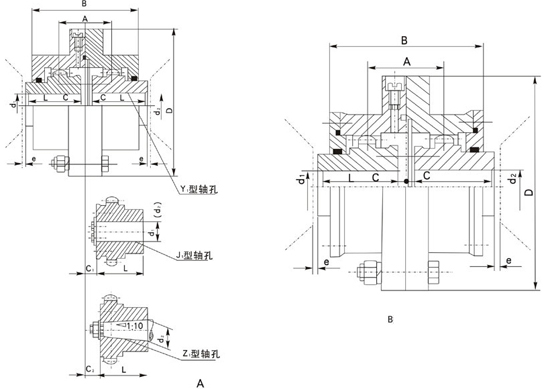 轴孔长度 | A | B | D | C | C1 | C2 | e |