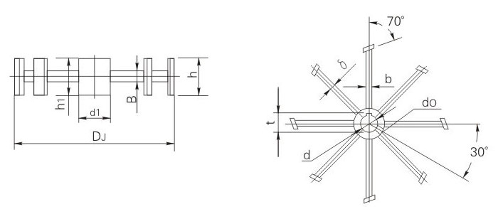 | DJ | d | d1 | h1 | B | h | d0 | 键槽 | δ | 重量(kg) | |