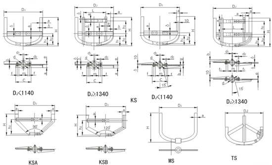 椭圆底框式-KS、直角锥底框式-KSA、钝角锥底框式-KSB、锚式-MS、搪玻璃专用锚式-TS