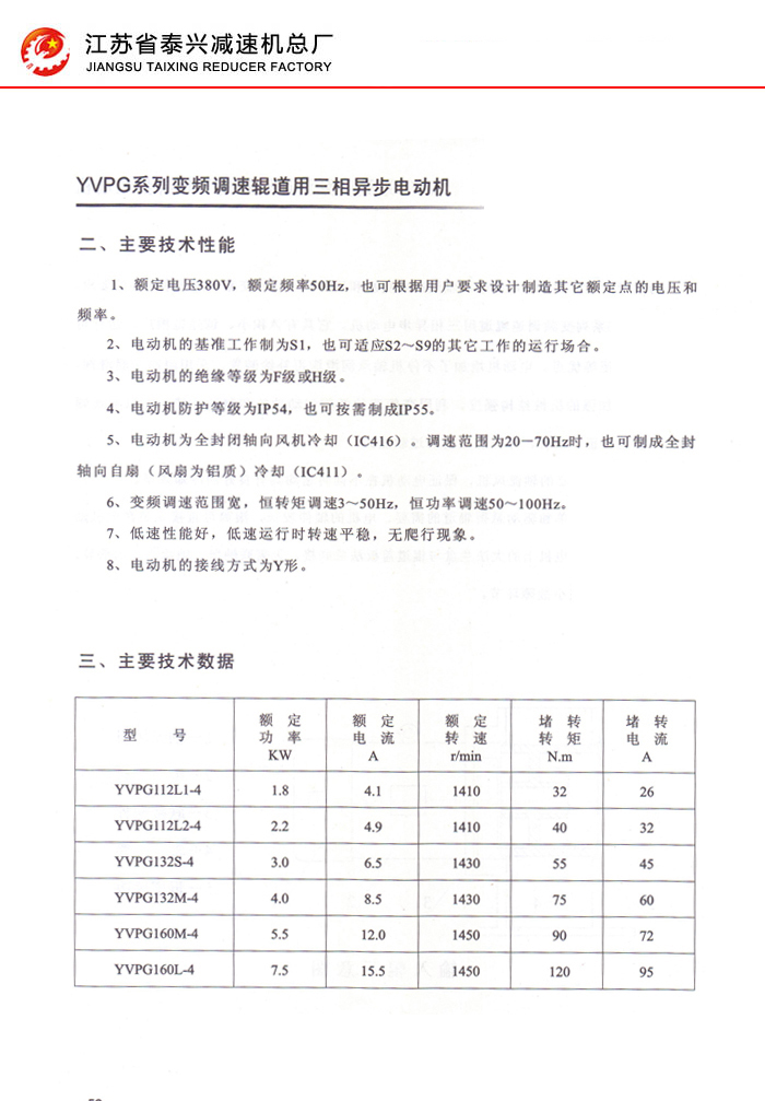 YVPG系列变频调速辊道用三相异步电动机51-53