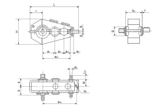 c-齿轮轴端(仅用于中心距为236-560mm的减速器。)