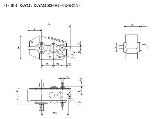 (3)表5QJY23、QJYA23减速器外形及安装尺寸