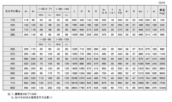 (1)表3QJY2、QJYA2减速器外形及安装尺寸