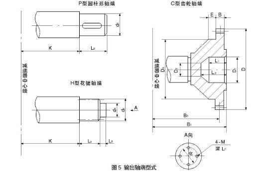 (4)输出轴型式:平键,渐开线花键,齿轮轴端,空心轴四种。