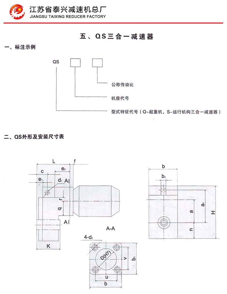 QS系列“三合一”减速机为平行轴式减速机,主要用于桥式起重机大小车运行机构;本系列产品亦可用于运输、冶金、矿山、化工、建筑、铁路、港口、国防工程、轻纺工业等各种机械设备中的传动机构。