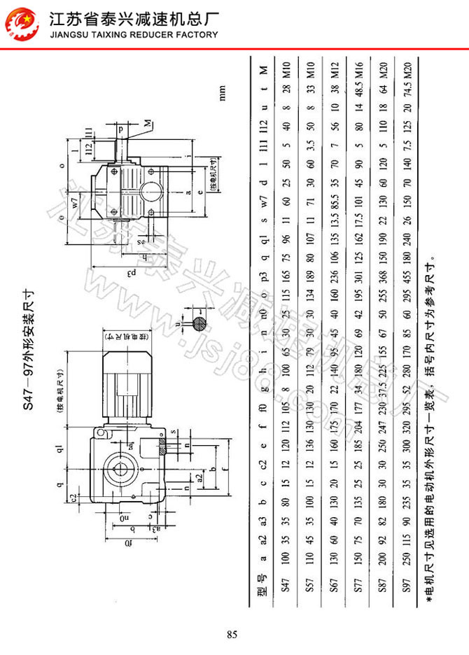 1、S系列斜齿轮-蜗轮减速电机具有很高的科技含量,有斜齿轮与蜗轮蜗杆结合一体传动,提高该机力矩与效率。该系列产品规格齐全,转速范围广,通用性好,适应各种安装方式,性能安全可靠寿命长,实施了国际标准要求。