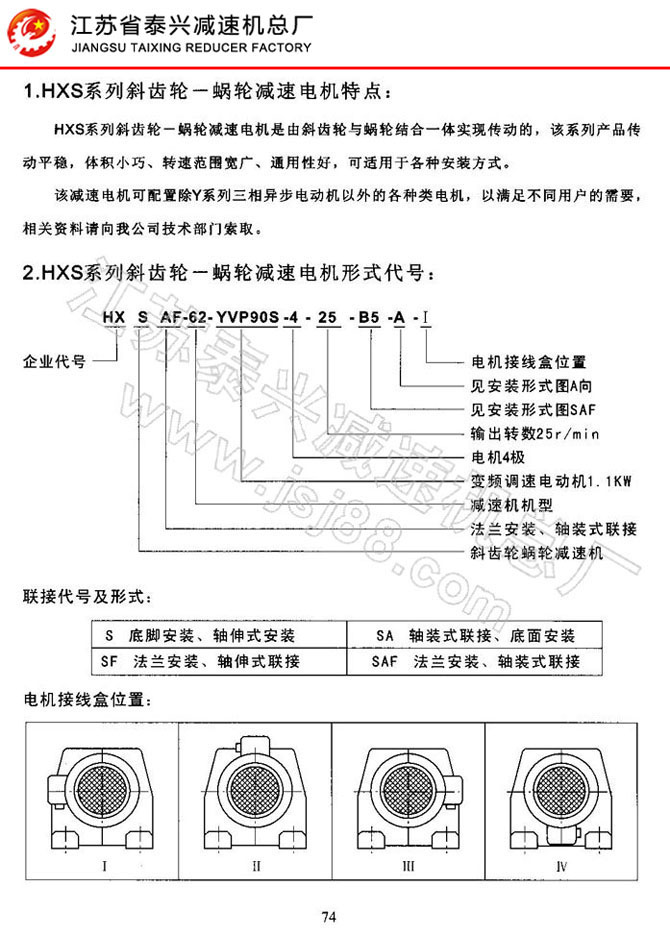 一、HXS系列斜齿轮-蜗轮减速电机特点: