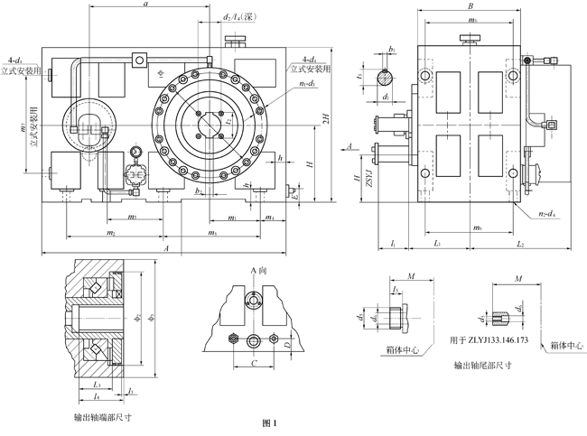 ZLYJ塑料橡胶挤出机减速机外形尺寸及装配型式(JB/T8853-2001)