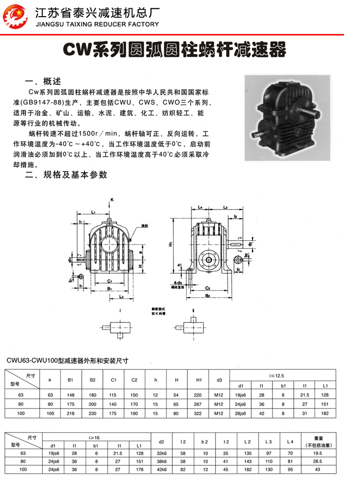 CWU、CWS、CWO圆弧圆柱蜗轮减速机