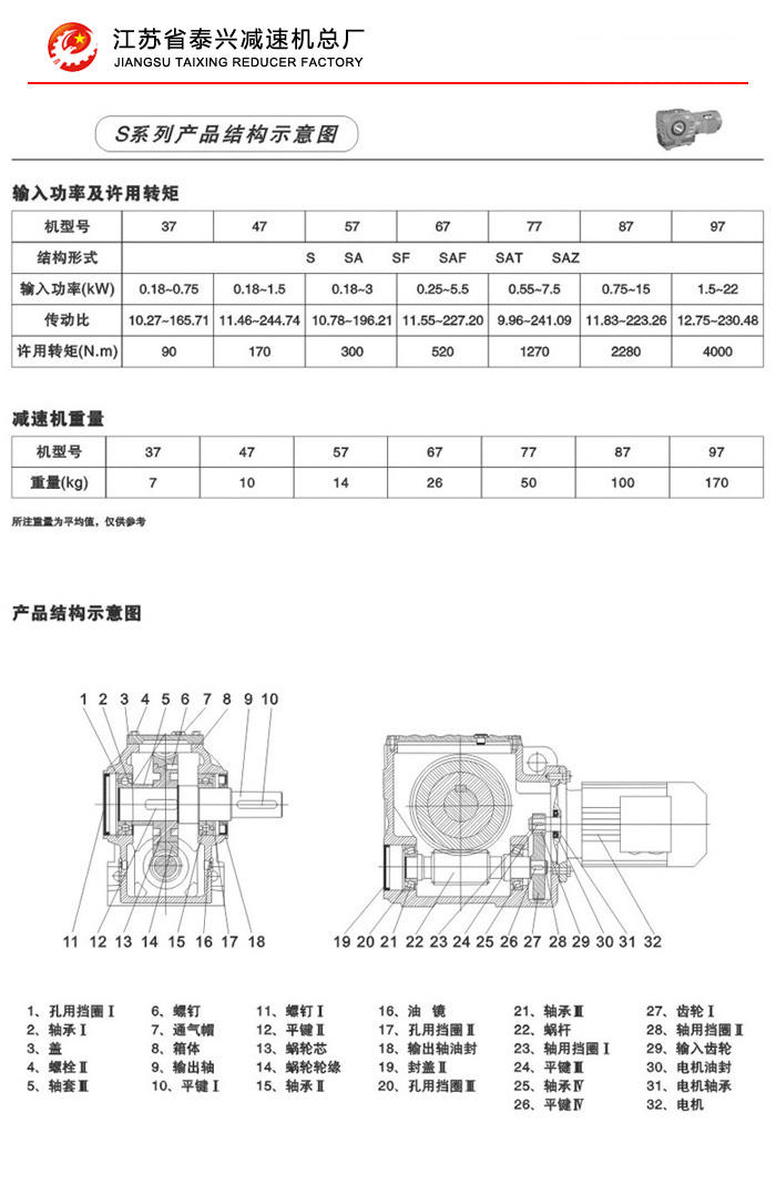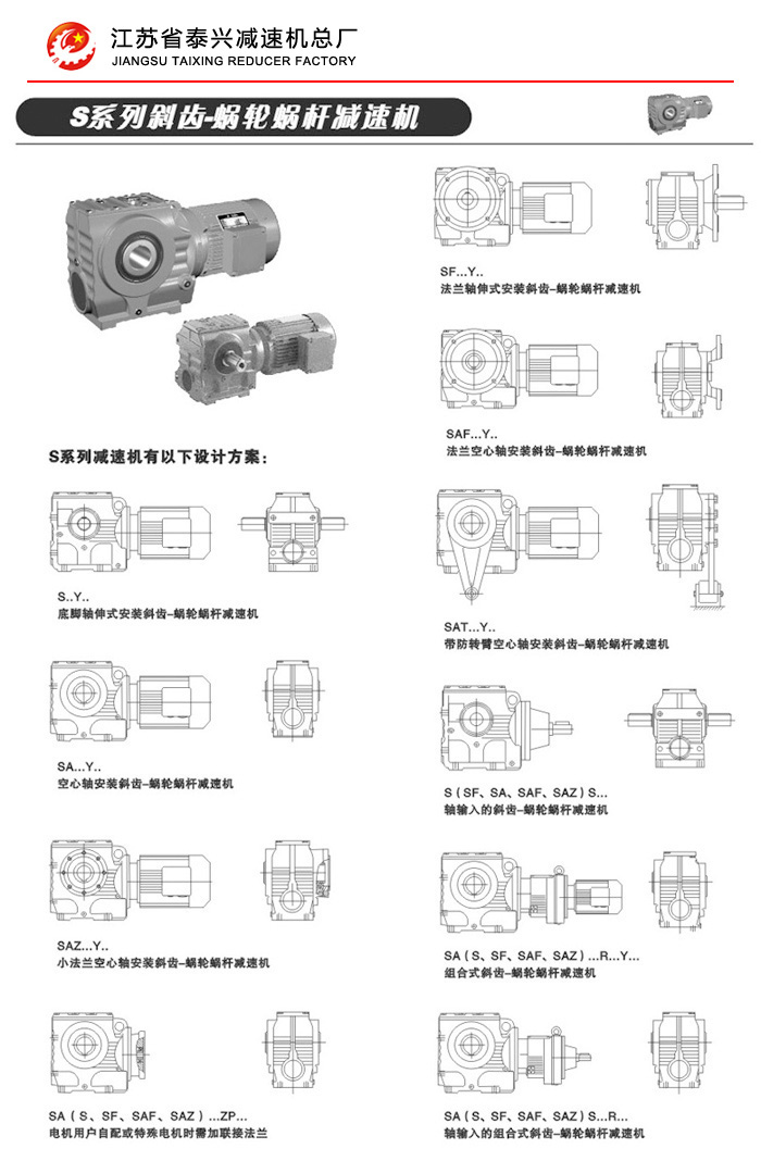 S系列斜齿蜗轮蜗杆减速机性能特点: