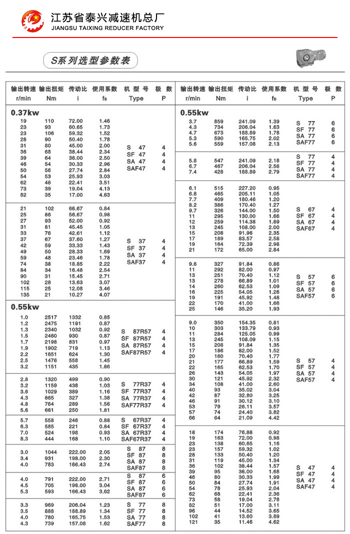 S系列蜗轮蜗杆减速机除具有常规特性外,该机还采用了斜齿-蜗轮形式,使结构更加合理化,它不仅改变了比单级蜗轮蜗杆传动具有更高的传动效率和承载能力,而且在结构布局上缩小了空间占地面积,同时在相近体积条件下,能获得更大传动比,更有利于设备的配置,该机能与各种减、变速机组合,满足不同的使用要求。