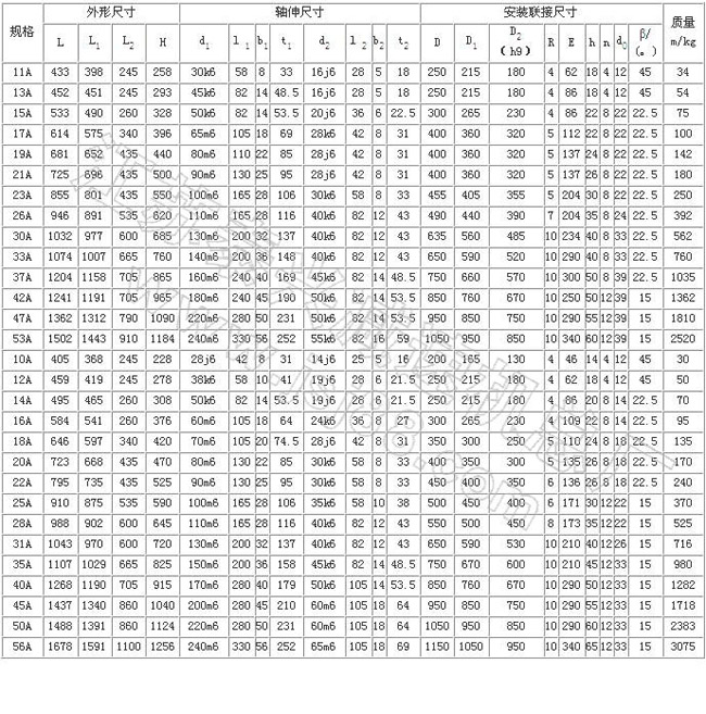 工作条件:输入转速28B型以下≤3000 r/min,40B型以下≤1800r/min,45B型以下≤1000r/min,Y型≤1500r/min;公称转矩2.107~588kN·m;传递功率0.25~2000kW;工作环境温度为-40~45℃,低于0℃时,启动前润滑油应预热,高于45℃时应采取降温措施。