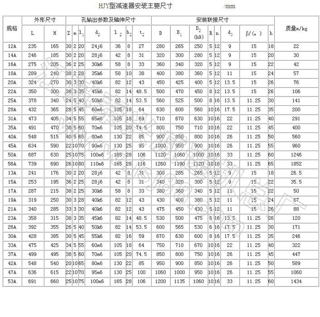 工作条件:输入转速28B型以下≤3000 r/min,40B型以下≤1800r/min,45B型以下≤1000r/min,Y型≤1500r/min;公称转矩2.107~588kN·m;传递功率0.25~2000kW;工作环境温度为-40~45℃,低于0℃时,启动前润滑油应预热,高于45℃时应采取降温措施。