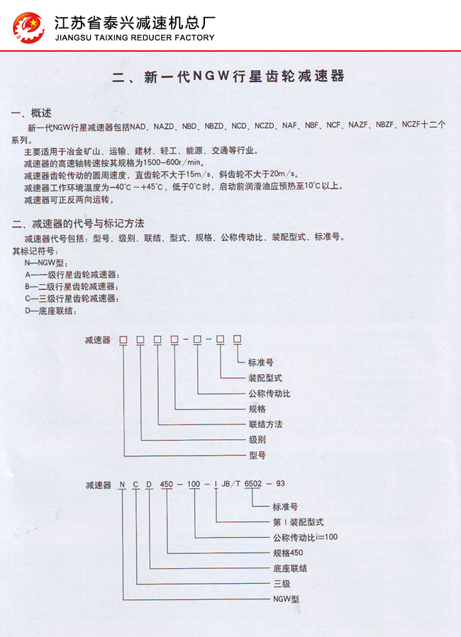 新式NGW行星减速器包括NAD、NAZD、NBD、NBZD、NCD、NCZD、NAF、NBF、NCF、NAZF、NBZF、NCZF十二千系列。
