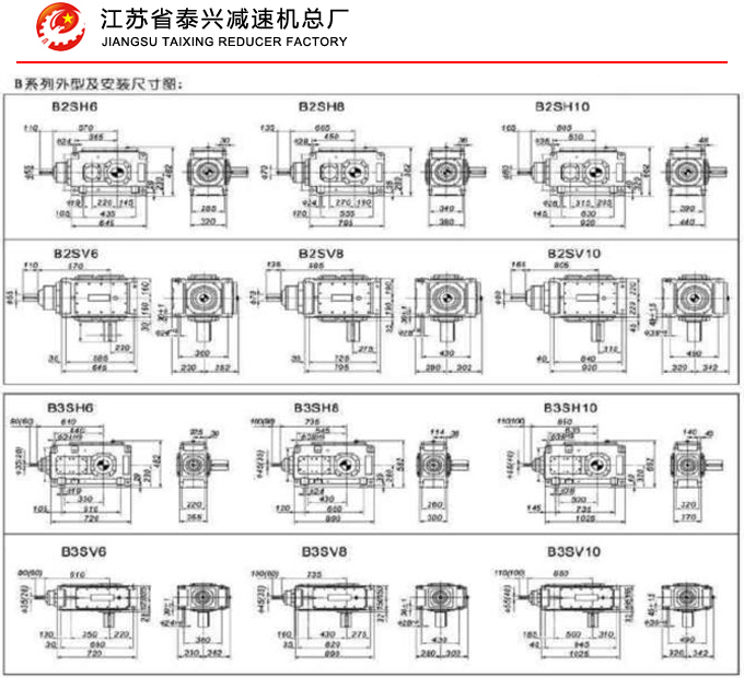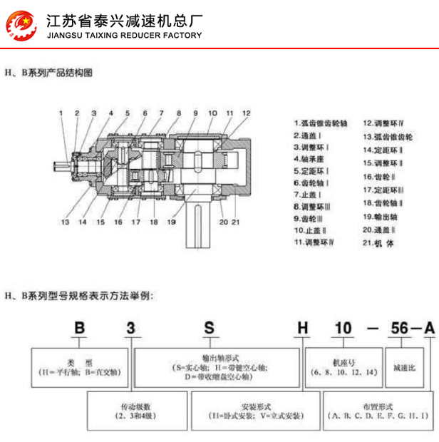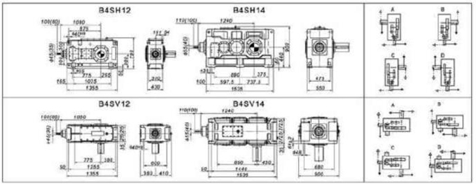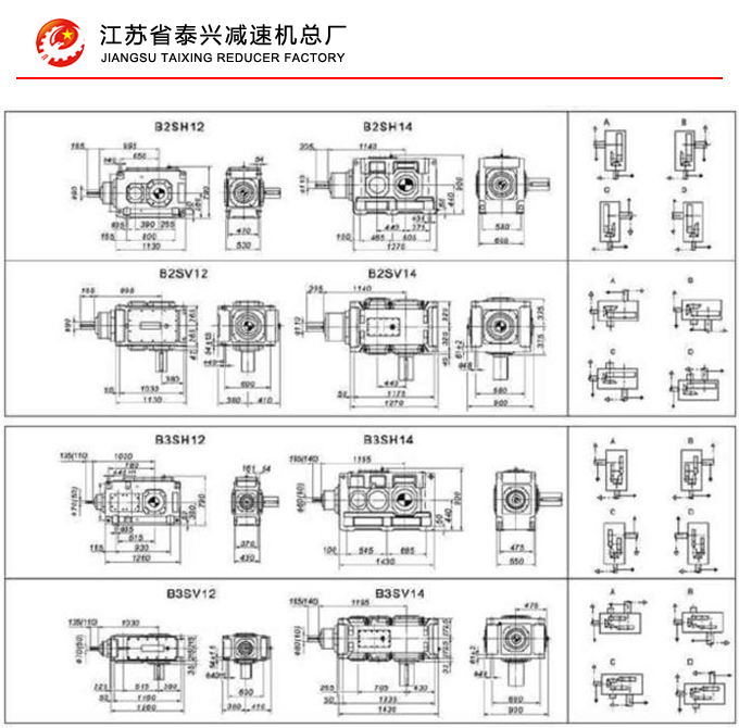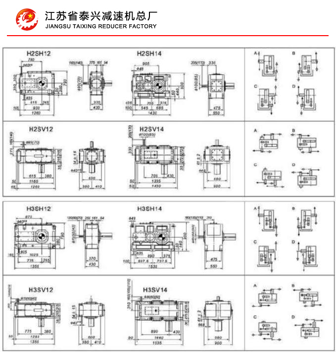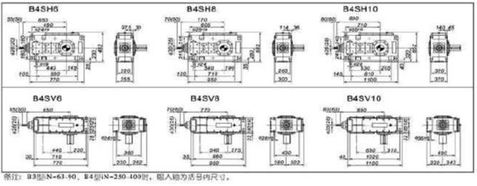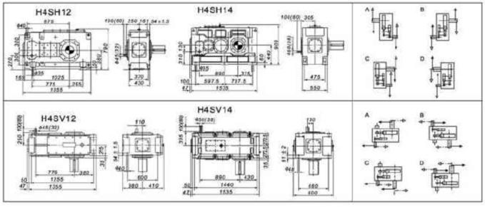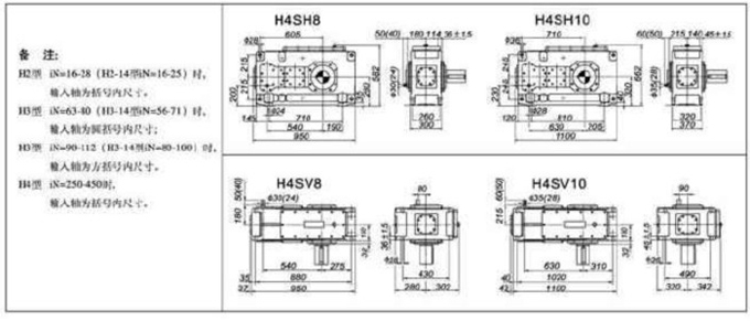 1.H、B大功率齿轮减速机采用通用设计方案,可按客户需求变型为行业专用的齿轮箱。